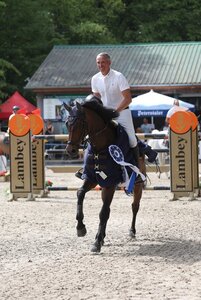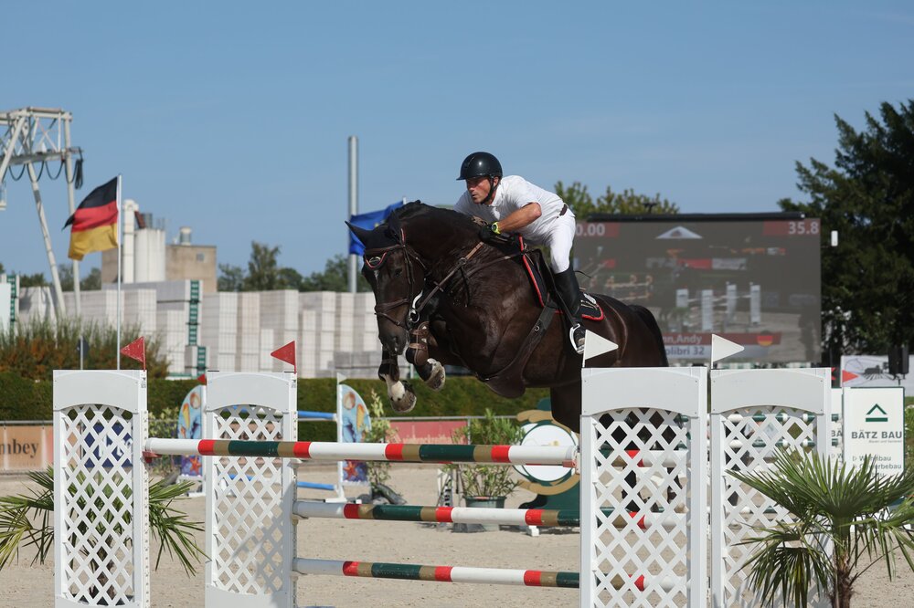 Der Große Preis bot einen gelungenen Abschluss für Landesmeister Günter Treiber in Durmersheim, er siegte im Sattel seines Cassis mit dem einzigen fehlerfreien Ritt im Stechen. Insgesamt 19 Teilnehmer waren im Turnierhöhepunkt gestartet, vier von ihnen gelang der Einzug ins Stechen. Andy Witzemann sogar gleich mit zwei Pferden, seinem Cassadero und Hannoveraner Titan, wobei er Cassadero zurückzog. Im Sattel von Titan startete er als Erster und hatte einen Abwurf. Der Ritt sollte am Schluss Rang zwei bedeuten. Sascha Braun war im Umlauf mit seinem Schimmel Commander Joe eine tadellose und stilistisch überaus sehenswerte Runde gelangen. Im Stechen fiel die letzte Stange, Rang drei mit dem Württemberger aus der Zucht der ZG Gühring. So musste Günter Treiber als letzter Starter "nur" fehlerfrei reiten. Eine willkommene Aufgabe für ihn und seinen gewaltig springenden Cassis, der mit Riesensätzen über die 1,45 Meter hohen Sprünge flog aber kein grundschnelles Pferd ist. Das Paar blieb fehlerfrei und holte sich damit den Sieg.