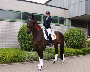 Nun stehen auch die Finalisten der vierjährigen Reitponyhengste fest. Dabei tanzte Crosby (v. Cravitz M – Campari) aus der Zucht von Severin von Rumohr und vorgestellt von Wenke Kraus unter anderem dem letztjährigen Bundeschampion der Dreijährigen, Herzgold (v. Fis H – Herzzauber D, Z.: Danica Duen) auf der Nase herum und schnappte sich den Sieg. Die Vorstellung des Holsteiner-Ponyhengstes beinhaltete so einige Highlights. Eins davon war ganz klar der Trab. Die beeindruckende Bewegungsdynamik kombiniert mit hohem Gleichmaß und Taktsicherheit bei aktivem Hinterbein wurde mit einer 9,5 belohnt. Auch der Galopp musste sich im Vergleich dazu nicht verstecken und wurde mit einer 9,0 bewertet. Im Schritt kam Crosby heute noch nicht zu vollen Losgelassenheit und dementsprechend zeigte er nicht allzu viel Übertritt (7,5). Neben den vielversprechenden Grundgangarten gefiel den Richtern heute auch die Rittigkeit, wofür sie eine 9,0 vergaben. Hierbei mussten noch kleinere Abstriche gemacht werden, da Crosby das Gebiss nicht optimal annahm und sich immer wieder ein offenes Maul zeigte. Die Note für Exterieur von 9,0 komplettierte die starke Endnote von 8,8. Doch Jaqueline Schurf und Dynamic Date AT waren dem Siegerpaar wahrlich dicht auf den Fersen und durften sich über eine starke 8,7 freuen. Dynamic Date (v. Dating AT – Calvin Klein, Z.: Adolf Theo Schurf) unter dem Sattel von Jacqueline Schurf zeigte sich heute sehr reell. So standen in den Noten für Trab, Galopp und Schritt zweimal die 8,5 sowie für den toll schreitenden und großen Schritt die 9,0. In Rittigkeit und dem Exterieur vergaben die Richter zum einen die 8,5 und zum anderen die 9,0, was schlussendlich eine Gesamtbewertung von 8,7 machte. In die Herzen der Zuschauer tanzte heute erneut der letztjährige Bundeschampion der dreijährigen Reitponys, Herzgold D (v. Herzzauber D – Casino Royale K, Z.: Danica Duen). Die Züchterin und Reiterin Danica Duen riskierte heute noch nicht alles und dennoch reichte es mit einem tollen Endergebnis von 8,4 für einen guten dritten Platz. Hier ist im Finale sicherlich noch mehr drin. Ebenfalls im Finale stehen Sophie Dammeyer mit FS Darlington (8,3), Mareike Peckholz mit Steendieks Dinaro (8,3) und Mareike Mimberg-Hess mit Champagner zum Frühstück (8,2) sowie Michele Schulmerig mit Cornelius (8,2). Letzterer bedeutet erneut ein Warendorfer Erfolg für das Ländle. Cornelius (Crown Notting Hill - Haacon, Z.: Solveig Scherer) ist ein ehemaliges Riedlinger Auktionsfohlen und avancierte in diesem Jahr unter anderem zum Landeschampion. Heute stellte ihn seine Ausbilderin einmal mehr gefühlvoll vor, was für die erfolgreiche Ponyausbilderin mit einem weiteren Finalticket belohnt wurde. Was für ein starker Erfolg für Michele Schulmerig!