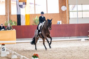 Das Balinger Dressurturnier ist wieder zurück, endlich. Seit ein paar Jahren zählt das Sichtungsturnier auf dem Gelände der Reitanlage Loesdau in Balingen-Ostdorf zu einer der festen Termine im Turnierkalender der baden-württembergischen Dressurjugend. Ein weiteres Turnier gab es in Balingen nun schon vier Jahre nicht mehr. Doch in diesem Jahr ist es wieder soweit. Ein engagiertes Team um Turnierleiterin Angela Kraut hat sich „getraut“ und ein gut organisiertes Turnier bei besten Bedingungen auf die Beine gestellt. Dabei spielt sogar das Wetter mit und das Balinger Team wurde zwar nicht mit super vollen Starterfeldern, dafür aber mit strahlendem Sonnenschein und bester Stimmung unter den Reitern belohnt. Gleich am ersten Turniertag standen zwei S-Dressuren auf dem Programm, eine Amateur-S-Dressur und eine S*-Dressur. Erstere wurde von Leonie Moll mit ihrem routinierten Equidiamonds Bright Bellini angeführt. Die beiden sind ein echtes Erfolgsteam und konnten sich im vergangenen Jahr sowohl für das Finale des IWEST Dressur Cups qualifizieren als auch den Titel bei den Landesmeisterschaften in der Altersklasse der Jungen Reiter sichern. In diesem Jahr sind sie nun aus dem „Nachwuchslager“ altersbedingt raus, machen aber nicht weniger erfolgreich weiter. So machte die Schülerin von Jürgen Bimmel beim Dressurturnier in Illertissen ihr Goldenes Reitabzeichen voll und befindet sich in diesem Jahr erneut auf direkten Wege in Richtung Finale des IWEST Dressur Cups. Doch kommen wir zurück zur heutigen Balinger S-Dressur: Leonie Moll und ihr 13-jähriger Württemberger (Z.: Manfred Berreth) legten gleich zu Prüfungsbeginn eine Messlatte, die bis zum Schluss kein weiteres Paar knacken konnte. Mit einer sehr gleichmäßigen Trabtour, einer losgelassenen Schritttour und einer sicheren Galopptour, wobei die schnurgeraden und gut ins Bergauf gesprungenen Serienwechsel zu den Highlights zählten, punkteten sie sich zu 70,4 Prozent. Das bedeutete der Sieg vor Tanja Gerber mit Quantissimo, die dem Siegerpaar mit 69,5 Prozent noch am dichtesten auf den Fersen war. Auch diese beiden überzeugten mit einer gleichmäßigen Runde, wobei die Highlights unter anderem in den gut kreuzenden Trabtraversalen und den sicheren Serienwechseln, lagen. Die Juniorin Juliane Dörr komplettierte mit ihrer Rappstute Finest Black Lady das Podest und sicherte sich mit 67,8 Prozent eine weitere Top-Platzierung in der schweren Klasse. Auf den Plätzen vier und fünf folgten erneut Tanja Gerber mit ihrem routinierten Vitruv (67,5 Prozent) und Gabriele Matthes mit Escostar (67,3 Prozent). Auch Annemarie Maruck mit Desperaux (66,9 Prozent) sowie Freya Bistritz mit Amarillo (66,6 Prozent) und Matthias Schramm mit Seehof’s Lirago (66,6 Prozent) freuten sich über eine Platzierung.