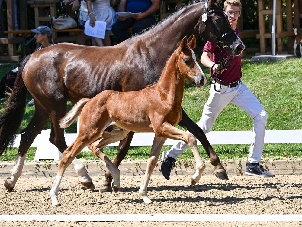 Das teuerste Springfohlen stellte die Zuchtgemeinschaft Köninger: Ein Sohn des Jasper aus einer Mutter von Chacco Blue. Für 9.500 Euro wechselte Jasper den Besitzer. Eine Besitzergemeinschaft aus dem Norden ließ sich den hoffnungsvollen Hengstanwärter für die DSP-Hengsttage 2027 nicht entgehen. Im Schnitt kosteten die 36 Fohlen 6847 Euro. Zwei Fohlen sicherte sich ein treuer DSP-Kunde aus Portugal. Der Auktionsverlauf spiegelte die aktuell nicht einfache Marktlage im Fohlenverkauf wider.