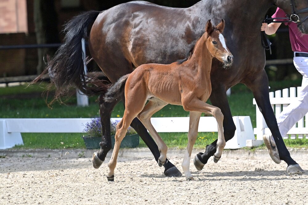 Ein guter Schluss ziert alles: Am Auktionstag bei den Fichtenhof Classics konnte Auktionator Hendrik Schulze Rückamp um 14 Uhr bei strahlendem Sonnenschein den Auktionsring auf dem prachtvoll herausgebrachten Dressurviereck auf der Reitanlage der Familie Petit in Schäftlarn eröffnen. Die Auktionspremiere lief sehr positiv. Drei der 13 angetretenen Fohlen konnten im fünfstelligen Preissegment zugeschlagen werden. Allen voran ein Sohn des Va Bene aus einer Mutter von Sir Donnerhall I. Der elastische Taktmeister aus der Zucht von Achim Bauer beeindruckte mit losgelassenen, schwungvollen Trabrunden und konnte bei 16.000 Euro Einstellern des Fichtenhofes zugeschlagen werden. Dieselbe Abstammung, Va Bene in Anpaarung mit Sir Donnerhall I, dieses Mal aus dem Stamm der Grand-Prix-Stute Novia, aus der Zucht von Sebastian Kopp, sicherten sich für 11.000 Euro ebenso Kunden des Fichtenhofs. Dritter im Bunde der Ü-10.000-Fohlen: Ein Sohn des Dynamic Dream aus einer Mutter von De Niro. Top gezogen und mit viel Bewegungsqualität beeindruckte er eine junge Dressurreiterin, die sich auf eine gemeinsame große Zukunft mit ihm freut. Freude hatte auch an diesem sehr guten Verkaufsergebnis das Züchterhaus Oberthür & Rothacher.