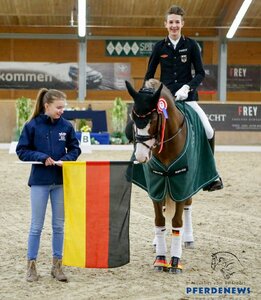 Ponymaster Moritz Treffinger bleibt auch bei der letzten Sichtung im rheinländischen Langenfeld auf Euro-Kurs. Mit seiner Stute Top Queen erreichte er in der wichtigen Sichtungsprüfung mit stattlichen 74,06 Prozent der Punkte Rang zwei hinter der bereits EM-erfahrenen Lucie-Anouk Baumgürtel mit Massimiliano FH und vor Laura-Franziska Riegel aus Bonn mit Cindarella. Nach den bisherigen Erfolgen Treffingers rückt eine EM-Teilnahme dieses Jahr also in greifbare Nähe. Eine letzte Sichtung am Samstag soll Gewissheit bringen. Die Pony-Euro findet dieses Jahr Ende August in England statt (rok).