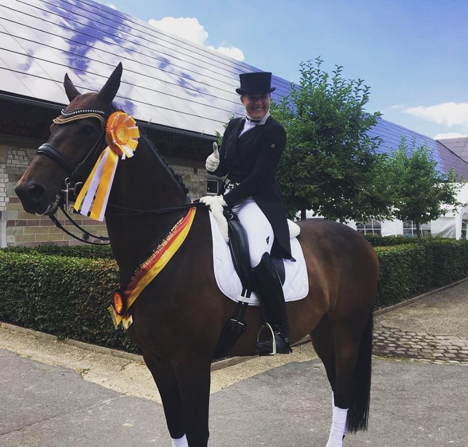 Auf dem Linslerhof im Saarland hat die Mannheimer Dressurreiterin Madeline Grimminger ihre erste Drei-Sterne-Prüfung gewonnen. Im Sattel ihres zehnjährigen Dänen Heros bekam sie 67 Prozent der Punkte und verwies damit den Renninger Profi Andreas Platzdasch mit seiner Stute Glamour auf Rang zwei (rok).