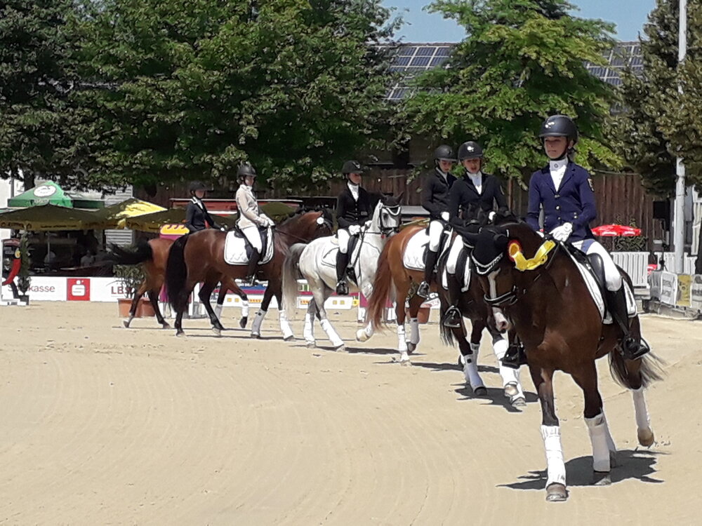 Die stärksten Ritte sah man bei den Junioren; Jana Schrödter zeigte ihre bewegungsstarke Neuerwerbung Der Erbe und siegte auf Anhieb mit fast 71 Prozent der Punkte vor ihrem Stallkameraden Philipp Merkt auf der schwungvollen Stute Felice. Titelverteidigerin Anna Casper belegte mit Collin Conner Rang drei vor der frisch gebackenen S-Siegerin Kim Hanna Heininger mit Romina. Allerdings lagen hier die Richterurteile weit auseinander. Gotthilf Riexinger vergab an Jana Schrödter 20 Punkte weniger als Martin Rassmann, bei Philipp Merkt war es dann genau umgekehrt.