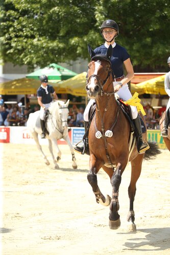 Die zweiten Wertungsprüfungen bei den Junioren und im Championat der Junioren (U16) haben einige Unterschiede zum Vortag hervorgebracht. So hat sich Maren Tiefenbacher mit Costas im Champinoat von Rang sieben auf die Spitzenposition vorgearbeitet. Sie siegte vor Lars Siegle mit Disco und Lilly Schmitt mit Cairo H. Schmitt ist auch vor dem Finalspringen auf dem zweiten Platz, Jana Erkner liegt mit Sarina vor ihr auf der zweiten Position.