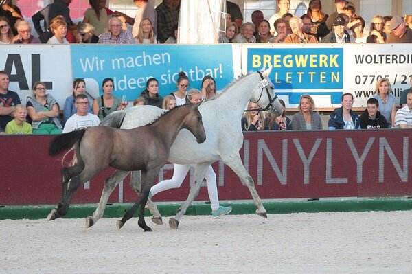 Zweitteuerstes Fohlen war heute Abend ein Hengstfohlen von Origi D'O-Landjunge das von Edgar Langen ausgestellt wurde. Für 20 000 Euro wechselt dieses typvolle Fohlen sein zuhause. Von den 16 Überfliegern wurden zehn für 10 000 Euro und mehr zugeschlagen. Der Durchschnittspreis stieg im Vergleich zum Vorjahr auf 12 731 Euro an, wobei die Fohlen einen Gesamtumsatz von 203.700 Euro brachten.