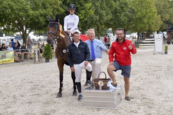 Bemerkenswert ist dabei in Zeiten des internationalen Pferdehandels, dass zwei der drei Stuten in weniger als 25km Entfernung vom Turnierplatz geboren wurden. Chuanita (Vater: Chacco Blue/ Mutter-Vater: Alexis Z) wurde von Rudolf Kühnle aus Frankenhardt-Honhardt gezüchtet, Camilla WF (V: Casall /M-V: Leicester) von Walter Frank aus Blaufelden-Geroldshausen (rok/Foto: Dill)