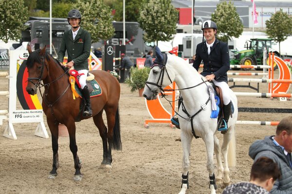 Früher Sonntagmorgen und Baden-Württembergs Landesspitze blieb unter sich im Zwei-Phasen-S* von Villingendorf. Mit 24.52 Sekunden in der zweiten Phase machte am Ende Marian Müller mit Colago das Rennen. Der zehnjährige Württemberger stammt vom Albführen Vererber Colander ab und ist aus der Zucht des Gestüts selbst. Zweitpferd Albführen’s Vaya de Brenil Chaine steuerte Pferdewirtschaftsmeister Müller zudem auf Rang fünf. Doch auch die Konkurrenz war schon wach. Tobias Schwarz war nur eigen Augenaufschlag langsamer gewesen und belegte mit Württemberger Amadeo S aus der familieneigenen Zucht Rang zwei. Im Sattel des zwölfjährigen Schimmelwallachs Classico aus dem Besitz der Familie Mader wurde der Herbolzheimer Vierter. Prinz galoppierte unter Andy Witzemann auf den dritten Platz. Der noch amtierende BW-Hallenchampion war mit seinem wieder genesenem Top-Pferd noch nicht ans Limit gegangen. Auch der Württemberger FBW Casallino  (Z.: ZG Klaus u. Edwin Schuster) ergatterte unter dem Winterlinger eine Schleife. (akb | Foto:D. Matthaes)