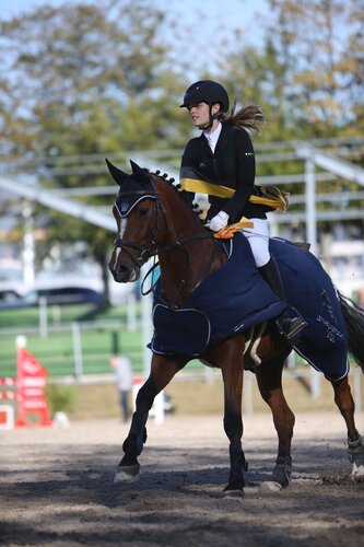 Laura Schäfer aus Ehestetten auf der Schwäbischen Alb hat beim Landesjugendcup-Finale in Pforzheim die U-16-Wertung der Springreiter gewonnen. Im Sattel ihrer erst siebenjährigen Stute Crazy Butterfly blieb sie im Stechen der vier besten Teilnehmen fehlerfrei und in der schnellsten Zeit - das war der Sieg im L-Springen und in der Landeswertung. Auf den Plätzen zwei und drei lagen die Schutterwälderin Lea Winkler auf der Württemberger Stute Cambaku und Anna-Lena Kölz vom Burkhardshof in Winnenden auf dem "Professor" Amaretto, der auch der schon die mittlerweile bis zur Klasse S siegreichen Lilli Colée in den Sport begleitet hat (rok/Foto: Doris Matthaes)