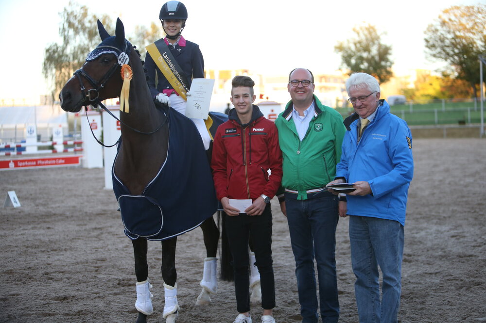 Zur Siegerehrung in Pforzheim war auch Baden-Württembergs Pony-Star Moritz Treffinger anwesend, um der Siegerin zu gratulieren. (rok/Foto: Doris Matthaes)