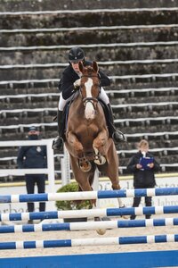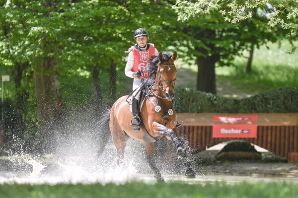 Zahlreiche Zuschauer bevölkern am heutigen Geländetag die Gestütswiesen in Marbach. Während im Stadion die Starterpaare der CCI1*-Intro-Prüfung ihren Auftritt im Parcours hatten, war um Punkt acht Uhr der erste Reiter der kurzen Zweisterne-Prüfung auf der Geländestrecke. Kurz vor Mittag stand dann fest, dass Ingrid Klimke und die erst siebenjährige Candy mit 24,9 als Führende ins abschließende Springen gehen werden. Wie an der Schnur gezogen hatte die Reitmeisterin die Stute durch den Cross pilotiert. Ebenfalls fehlerfrei blieben Anna Siemer und Zacky Zack, was die beiden zwei Plätze nach vorn im Ranking brachte (27,8). Michael Jung ließ es mit seinen beiden Youngstern im Gelände ruhig angehen und nahm Zeitfehler in Kauf. Mit Ginster startet der Olympiasieger von Platz sechs aus in den Parcours (30,7). Stark unterwegs im Cross auch Elena Dürr und ihr Flori - 30,9 Punkte und aktuell Platz sieben. Um 12. 45 Uhr geht mit Fouaad Mirza das erste Starterpaar des CCI4* auf die Strecke. (Foto TomsPic).