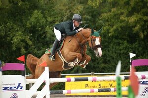 Es könnte im Moment durchaus schlechter laufen für den neunjährigen Chacco-Blue Nachkomme Chiapas und seinen Ausbilder Markus Kölz. Der Profi vom Burkhardtshof führte den Oldenburger in den letzten Wochen und Monaten zu insgesamt acht Siegen in der Klasse M und S. Am Fuße der Burg Hohenzollern gelang in Bisingen nun der neunte Streich. Im ersten schweren Springen des beliebten Turnierklassikers gingen über 70 Pferde an den Start - darunter die versammelte Landesspitze. Die S*-Prüfung am Freitagmorgen wurde zuhauf als Einlaufprüfung für das BW Bank-Springen sowie den Großen Preis genutzt. Schneller als Chiapas und Mehrfach-Landesmeister Kölz war dabei keiner. Als beste Amazone verwies Steffi Girrbach auf May Breeze Jörg Oppermann und Cantica auf den dritten Platz. Ehemals unter Stefan Hirsch erfolgreich kommt die Stute Missile du Buisson auch unter dem späteren Sieger Kölz mehr und mehr in Fahrt. Bis zu Zwei-Sterne Prüfungen haben die beiden schon für sich entschieden. Beim Bisinger Auftakt holte sich die Neu-Kombination Platz vier.