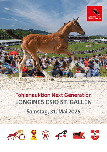 Nach der erfolgreichen Premiere der Fohlenauktion „Next Generation“ anlässlich des CSIO St. Gallen wird es in diesem Jahr eine Fortsetzung geben. Neu ist 2025, dass auch Fohlen aus der Schweiz im 15-köpfigen Lot vertreten sein werden. Der Verein Schweizer Sportpferde hat die Initiative ergriffen und beteiligt sich nun aktiv am Auktionsgeschehen. Nach wie vor im Boot sind die Initiatoren, das Westfälische Pferdestammbuch und der Pferdezuchtverband Baden-Württemberg. Die angebotenen Fohlen sind wieder von erlesener Qualität. Spitzenvererber Emerald van het Ruytershof, der 2024 die Preisspitze stellen konnte, ist mit drei Nachkommen vertreten. Der großartige Chacco-Blue stellt ebenso ein Fohlen wie der ehemalige Weltmeister Cumano von Jos Lansink. Auch alle weiteren Väter wie Comme il faut NRW, Zirocco Blue, DSP Va Bene, Conrad de Hus, Uricas van de Kattevennen, Ermitage Kalone und Diaron sind ausnahmslos züchterische Hochkaräter, die allesamt selbst im Sport hocherfolgreich sind oder waren. Ein besonderes Augenmerk wurde bei der Auswahl der Fohlen 2025 auch wieder auf die Qualität Mutterstämme gelegt. So sind mehrere Fohlenmütter selbst im Sport bis auf 1.50m und 1.60m Niveau erfolgreich. Des Weiteren sind die Auktionsfohlen über die Mutterseite auf das engste verwandt mit so großartigen Pferden wie zum Beispiel Deister, 3-facher Einzeleuropameister mit Paul Schockemöhle, Miss F.A.N, Nationscup Siegerin von Eddy Macken, Casquo Blue, Erfolgspferd von Harry Charles oder Chacco’s Son I, CSIO5* Sieger von Maurice Tebbel. Ein Exot unter den springbetonten Fohlen ist der farbenfrohe Sohn des Va Bene aus der selbst unter Andrina Suter bis zur Klasse S erfolgreichen Royal Princess.
