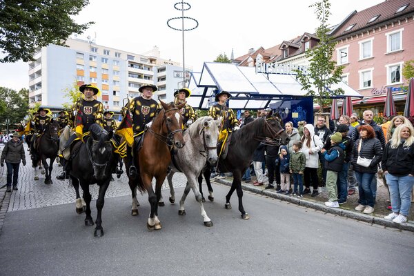 Traditionell fährt auch das Gespann der Fürstenberg Brauerei im Festumzug mit, begleitet Teilnehmer und Zuschauer bis zum großen Springplatz und lädt im Anschluss an die Prämierung der Gruppen zu ‚Freibier für alle‘!