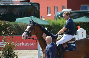 Fraglos beeindruckend war die Runde, die fischerDaily Impressed und Multi-Champion Michael Jung aus Altheim im Zwei-Phasen S** von Hohenzollern drehten. Scheinbar mühelos setzte sich der 10-jährige Cartani-Sohn unter seinem Ausbilder an die Spitze des Feldes. 23,95 Sekunden in der finalen Phase waren von der restlichen Konkurrenz nicht einzuholen. fischerDaily Impressed wird mehr und mehr zum Aufsteiger unter Jungs Sattel. Auf seine Zukunft darf man gespannt sein. Nach zweijähriger Abstinenz ist auch der Hesse Jörg Oppermann wieder in Bisingen zu Gast. Im Zwei-Sterne Springen gelang im Sattel von Cantica vor Michael Herhalt und Chacco MH Platz zwei. (FA)