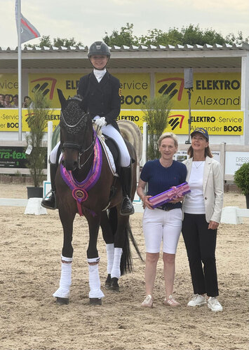 In der ersten Prüfung der mittleren Tour mussten die Amateure und die Jungen Reiter gemeinsam starten. Eine Überlegenheit der jungen Nachwuchsreiter. Nein. Vielmehr lagen sich die beiden „Gruppen“ ganz im Gleichgewicht. Schlussendlich freute sich eine Amateurin und eine Junge Reiterin punktgleich über den Sieg. Die Rede ist von der Hessin Sarah Wohlhauser mit QC Filipo Niro und Emilia Winter mit Dante Noir. Beide Damen kamen auf 71,9 Prozent und wurden für wahre Traumrunden mit dem verdienten Sieg belohnt. Die Bayerin Emilia Winter hatte mit einer sehr dynamischen Runde bei bestem Seitenbild überzeugt. Auf den weiteren Plätzen folgten Laura Löcher mit Wynton’s Son (71,4 Prozent), Juliane Dörr mit Finest Black Lady (69,6 Prozent) und Lisa Buchhold mit Zaza (69,5 Prozent). Apropos Lisa Buchhold: Die Amateurin, die die Landesmeisterschaften in diesem Jahr ganz klar anpeilt, setzte sich im Finale der Amateure am Finaltag durch. Mit einer technisch sehr sicheren Runde befand sie sich mit ihrer langbeinigen Stute Zaza fast schon in einer eigenen Liga und setzte sich mit 70,7 Prozent gegen Freya Bistritz mit Amarillo (68,6 Prozent) und Skadi von Reden mit Valentino (68,5 Prozent) durch. Sarah Wohlhauser mit Filipo Niro und Gabriele Matthes mit Escostar komplettierten die Top5. Ein wahrer Gänsehautmoment erlebte das Publikum von Winterlingen gleich in der ersten Prüfung des Tages. Ja, hier flossen sogar Tränen. Tränen der Freude und Rührung, nämlich bei Jana Reichl. Nach etlichen Top-Platzierungen in den vergangenen Wochen freute sich die Schülerin von Ramona Ritzel im Sattel von Bentley im Finale der Jungen Reiter, was gleichzeitig auch als Wertungsprüfung der Young Talent Tour fungierte, über ihren ersten (längst ausstehenden) S-Sieg (69,5 Prozent). Auf die gleiche Punktzahl kam auch die hessische Junge Reiterin Laura Löcher mit Wynton’s Son. Erneut stark präsentierten sich Jasmin Fetzer und Olympia, die sich mit 68,8 Prozent auf Rang drei einreihten. Fehler in den Dreierwechseln verhinderten eine noch bessere Platzierung. Carla Marie Porsch mit Santa Clara (68,2 Prozent), Louisa Reisch mit Bandol (68,1 Prozent) und Kaya Wehrle mit Fürstenprinz (67,8 Prozent) komplettierten die Platzierung.