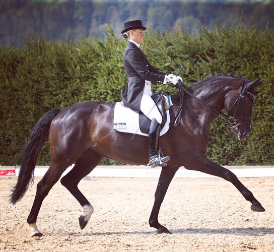 Laura Weiss war in den vergangenen Jahren für das Training der Pferde am Stall Faller in Güglingen bei Heilbronn zuständig. In der Saison 2018 war Laura Weiss im Sattel der württembergischen Stute Honeymoon aus der Zucht von Michael Kahl in Pfullingen besonders erfolgreich und mehrfach in Klasse S platziert (Foto: Keller). Die Stute ist mittlerweile verkauft und wird vom hessischen Ausbilder und früheren Berufsreiterchampion Michael Wagner weiter ausgebildet. Aber in München könne sie auf weitere talentierte Dressurpferde aufbauen.