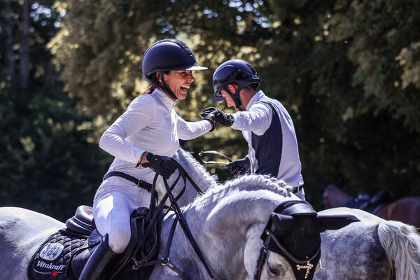 Eröffnet wurde das Stechen um die Podestplätze von Tina Deuerer und ihrer niederländischen Stute von Empire van de Heffink. Wie bereits im Umlauf bewies sich die filigrane Schimmel-Stute als wieselflink, wendig und mit genügend Ehrgeiz. Mit dem richtigen Maß an Risiko wusste ihre Reiterin den Stechparcours gekonnt zu meistern, blieb fehlerfrei und legte mit 38,87 Sekunden die erste Messlatte. Gleich im Anschluss drückte sie ihrem Bereiter Lukas Weiler die Daumen, der die Erwartungen für sein Debüt in dieser Klasse wohl kaum mehr erfüllen hätte können. Nicht mit dem letzten Risiko, jedoch in einer stilistisch sehr feinen Art und der nötigen Übersicht für so ein Springen pilotierte er seinen Schimmel-Wallach durch den Stechparcours. Jubelnd durchquerte er die Ziellinie. Der Blick zur Tafel: Zwar etwas langsamer als Deuerer, doch die Null stand! Also sollte es Niklas Krieg in der Hand haben, war die Zeit noch zu schlagen? Ja, die Zeit war noch zu schlagen, doch eben nicht fehlerfrei. Zwei leichte Fehler im Stechen, kosteten Krieg den Sieg. Damit stand fest, Tina Deuerer gewinnt, vor ihrem Bereiter Lukas Weiler und Niklas Krieg. „Ich bin so stolz auf dich!“, freute sich Tina Deuerer für ihren Bereiter und fügt hinzu „natürlich hätte ich ihm den Sieg auch gegönnt. Ich bin wahnsinnig stolz auf seine Entwicklung und was er leistet.“ Für den Team Deuerer also ein rundum erfolgreicher Nachmittag in Ichenheim.