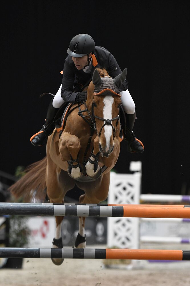 So schnell sah es gar nicht aus, aber die siebenjährige belgische Fuchsstute Mirabel vd Oudevelhoeve gewinnt mit ihren langen Beinen eben mehr Raum als andere Pferde, so dass sie unter Timo Beck im Finale der siebenjährigen Youngster bei den Baden-Classics rund drei Sekunden schneller war als der Rest.