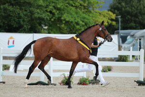 Apropos Anne Götter: Sie stellte in der Einlaufprüfung für die fünfjährigen Nachwuchspferde die Siegerstute vor. Die Rede ist von Clintina B. Abstammend von Colorit und Quite Easy I präsentierte sie sich über 1,15 m mit sehr gleichmäßiger Technik, reeller Technik und flinken Beinen. 8,4 war der Lohn und damit die goldene Schleife, vor Christian Heideker, der die Stolzenberg-Tochter Selle Ronda gesattelt hatte. Tim Casper und der For Pleasure-Sohn Forthago sichern.