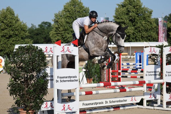 Letztes Jahr hießen die Titelträger bei den Landeschampionaten unter anderem Birkhof’s Arezzo Man und Lockdown TS und gerade Arezzo Man bewies sich auch in diesem Jahr in seiner Qualität mehr als vorbildlich. Solche Ausnahmepferde erhofft man sich natürlich auch in diesem Jahr bei den Championaten in Weilheim an der Teck. Bereits heute in den Einlaufspringen hielten die Youngster den heißen Temperaturen stand und bewiesen sich unter den Augen der Richtern. Angefangen bei den vierjährigen Springpferden zeigte sich ein Hengst des Haupt- und Landesgestüts Marbach überlegen an der Spitze. Die Rede ist von dem noch etwas grünen Schimmel-Hengst Lago di Lei. Vorgestellt von Eva-Maria Lühr präsentiert sich der Nathan de la Tour AA- Sohn mit einer abgeklärten und vorbildlichen Art, feinster Manier und guten Grundgangarten. Wohlverdient wurde die Runde mit einer 8,6 belohnt. Die silberne Schleife sicherte sich die DSP-Stute Venus PZ (Verdi x Balou du Rouet). Auch sie zeigte sich unter ihrem Reiter Christian Heideker dem Alter entsprechend sehr gut ausgebildet und bereits mit guter Übersicht im Parcours. Rang drei ging an die frischgebackene Süddeutsche Meisterin Anne Götter und ihren DSP-Wallach Like Cassito B.