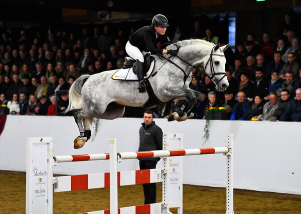 Vor bis zum Schluss voll besetzten Rängen haben Marbachs Landoberstallmeisterin Dr. Astrid von Velsen-Zerweck und Hendrik Schulze-Rückamp am Fastnachts-Samstag zwischen 17 und 21 Uhr in der Marbacher Reithalle 35 Hengste, zwei Gespann- und sechs Auktionspferde sowie zwei Stuten mit Fohlen präsentiert. In einem ansprechenden und von den Zuschauern gut aufgenommenen neuen Format in Anlehnung an den pferdeschonenden „Marbacher Ausbildungsweg" wurde bei der Vorstellung und Kommentierung auf Effekthascherei verzichtet. Springtalente und im Parcours bewährte Landbeschäler zeigten ihr Können dennoch anspruchsvoll über zwei Sprünge in der Bahn. Die Dressurvererber wurden ebenfalls reell und ohne Show-Effekte präsentiert. Das um einige Auswärtige ergänzte Marbacher Team zeigte letztmals unter Leitung von Hauptsattelmeister Karl Single, dass die Unterstützung von Oliver Schaal, Eva-Maria Lühr und Hella Kuntz in der Ausbildung Früchte trägt.