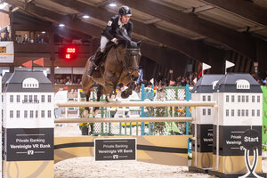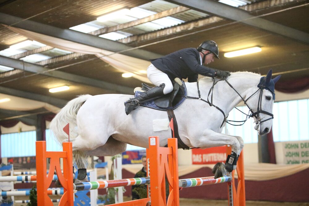 Er ist einfach einer der Besten: Bernd Herbert aus Viernheim hat in Mannheim-Neckarau im Sattel der Schimmelstute Simply the Best das erste S-Springen gewonnen. Der Routinier aus Südhessen wurde mit Esquire außerdem Dritter. Dazwischen platzierte Günter Treiber seinen Buddy Holly auf Rang zwei (rok/Foto: Doris Matthaes).