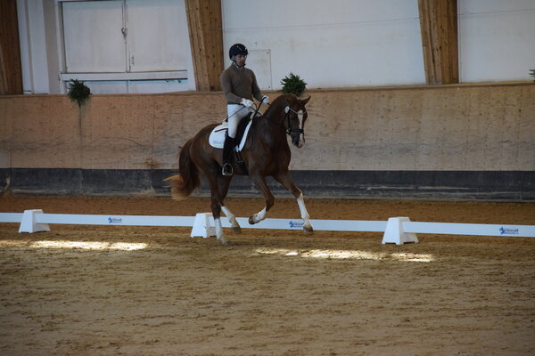 In München-Riem stand der Sporttest für gekörte Hengste an diesem Wochenende auf dem Programm. Der für den Pferdezuchtverband Baden-Württemberg gemeldete Fabritius konnte in seiner Altersklasse bei den vierjährigen dressurbetonten Hengsten überzeugen. Der For Romance I-Disco-Tänzer Sohn stammt aus der Zucht von Christine Künzig-Ritter und steht in Besitz von Thomas Casper (Gestüt Birkhof). Unter Nicola Haug gefiel der Fuchs vor allem mit seinem taktsicheren Schritt und seinem fleißigen Grundtrab. Auch unter Fremdreiter Sebastian Heinze konnte sich der Hengst beweisen, er wurde für seine Willigkeit und die gute Anlehnung gelobt. Insgesamt erreichte Fabritius eine dressurbetonte Endnote von 8,26.