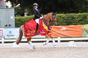 Die DSP-Championate haben eigentlich gerade erst begonnen. Schon jetzt steht aber fest: Es sind die Turniertage von Michele Schulmerig. Nach ihrem Doppelerfolg bei den Reitponys setzte sie sich auch in der Dressurpferde S durch. Im Sattel der DSP-Stute Royal Heritage (v. Royal Doruto-Florencio) aus der Zucht und im Besitz von Michelle Moos sicherte sie sich mit 73,7 Prozent die goldene Schleife und damit auch den Sonderehrenpreis für das bestplatzierte DSP-Pferd. Knapp dahinter folgten Nicole Casper mit DSP Vangelis (v. Vitalis-Sandro Hit, Z.: Gestüt Elstertal) (73,4 Prozent) und Christina Wessling mit FS Fascination (v. Falihandro-Lord Loxley, Z.: Ferienhof Stücker) (73,1 Prozent).