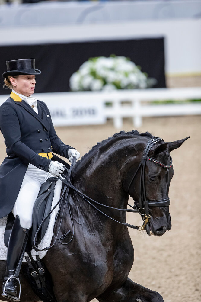 Zum dritten Mal in Folge – und auch zum dritten Mal mit Weihegold OLD – sichert sich Isabell Werth den Titel im FEI Weltcup-Finale. Es ist der fünfte Titel für die Grande Dame des Dressursports überhaupt in einem Finale. Mit der 14-jährigen Oldenburger Stute erhielt Werth in der Grand Prix Kür im Scandinavium von Göteborg 88,871 Prozent. Da war ihr – wie schon im Grand Prix – die US-Amazone Laura Graves mit ihrem “Professor” Verdades, dem 17-jährigen KWPN Wallach v. Florett As – relativ dicht auf den Fersen. Aber nicht so dicht wie im Grand Prix. Mit 87,179 Prozent ging Silber an Graves, die in der Kür von einem Richter auf dem Platz eins gesehen wurde, von anderen aber auch an dritter oder gar fünfter Stelle. Einen richtig guten Job machte Helen Langehanenberg mit ihrem ebenso routinierten Damsey FRH. Der 17-jährige Hengst v. Dressage Royal steigerte sich noch mal zum Grand Prix und kam auf starke 86,571 Prozent. Damit verwies sie den Dänen Daniel Bachmann Andersen mit Blue Hors Zack v. Rousseau mit 85,468 Prozent an vierte Stelle – im Grand Prix war er noch Dritter.