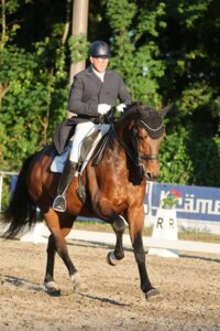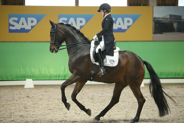 Wenn es läuft, dann läuft es: Karen Welz hat in Walldorf im Sattel ihrer neunjährigen Westfalenstute Sydney erneut eine S-Dressur gewonnen - es ist ihr dritter S-Sieg innerhalb weniger Wochen. Zuvor war die Schülerin von Katrin Burger bereits in S-Dressuren in Ankum und Meißenheim erfolgreich. Sie bekam fast 69 Prozent der Punkte und verwies Vivien Niemann mit ihrem routinierten Cippolini auf Rang zwei. Damit gehört die Nachwuchsreiterin, die für den Pforzheimer Reiterverein startet, schon jetzt zu den Aufsteigerinnen des Jahres (rok/Foto: Doris Matthaes).