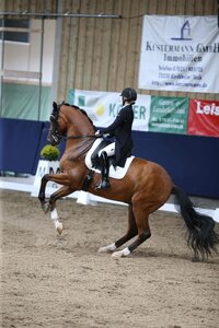 Als Lokalmatadorin und Vorsitzende des gastgebenden Vereins auf dem eigenen Turnier eine wichtige Prüfung zu gewinnen, das ist etwas ganz Besonderes: Susanne Hellmann hat es am Sonntag in Walldorf geschafft. Dabei war es sogar ein Zwei-Sterne-Sieg für die Walldorfer Vereinschefin im Sattel ihres 16-jährigen Holsteiners Lucky Dancer. Sie siegte sie in der Amateur-Intermedaire I, wenn auch denkbar knapp vor Dr. Klaus Steisslinger, dem Böblinger Turnierleiter und Landes-Vizemeister der Amateur-Dressurreiter, auf Dynamic Pleasure. Die beiden trennte nur ein einziger Punkt.