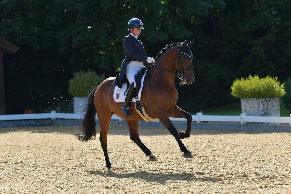 Lohnen sollte sich der Ausflug nach Bayern für die Australierin auf jeden Fall: Mit der zehnjährigen Rappstute Daenerys Targaryen setzte sich Simone Pearce an die Spitze der Intermediaire A, ließ dabei die Konkurrenz mit deutlichem Abstand hinter sich. Auch auf dem Silberrang fand sich ein Reiter wieder, der für Baden-Württemberg antritt: Frederik Leon Steisslinger vom RFV Böblingen hatte den KWPN-Wallach Favory erfolgreich vorgestellt und verwies die Ebersbergerin Julia Giner mit ihrer Hannoveranerstute Donna Erika auf Rang drei.